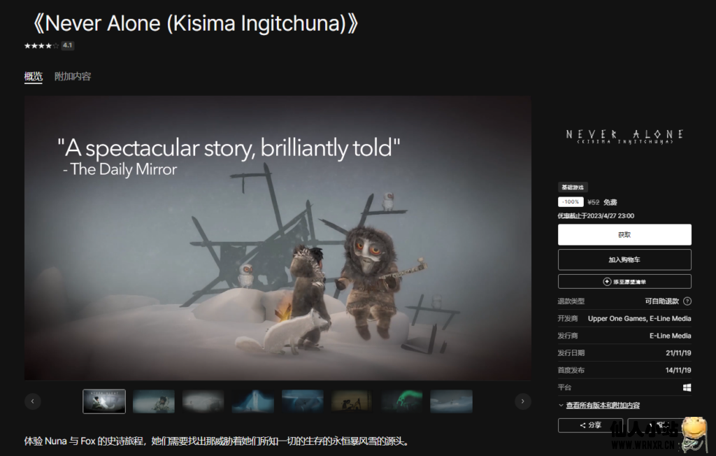 活动地址:https://store.epicgames.com/zh-CN/p/never-alone-kisima-ingitchuna