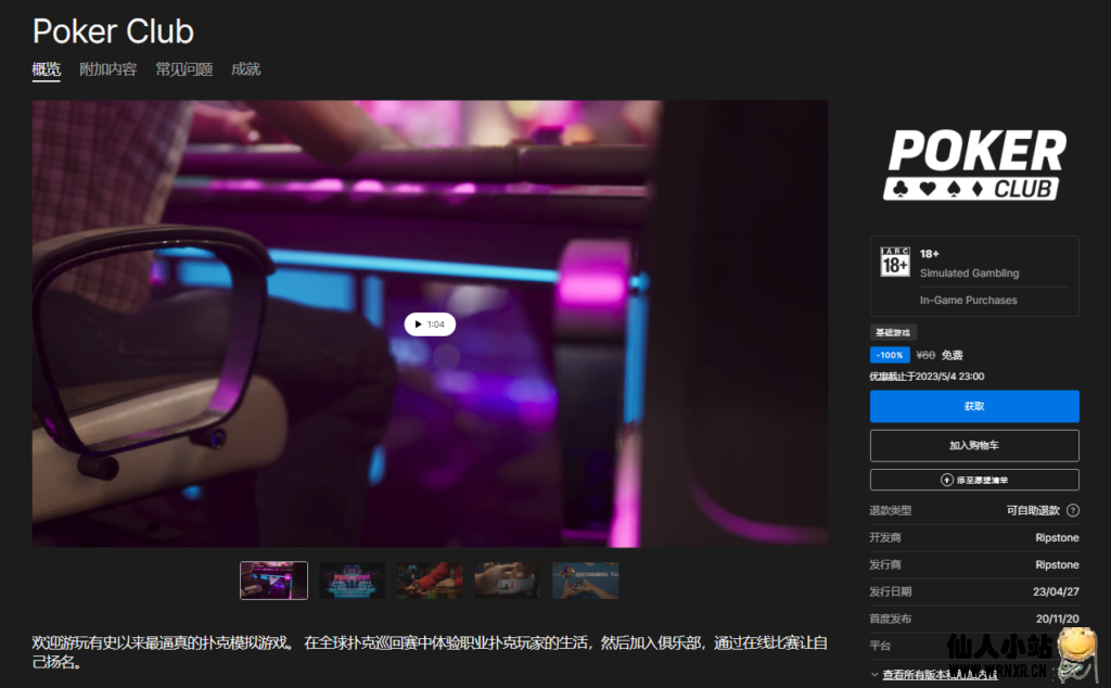 活动地址:https://store.epicgames.com/zh-CN/p/poker-club-6e18ee
