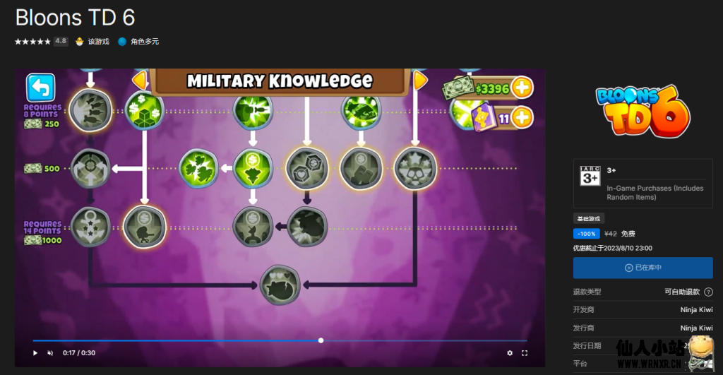 活动地址:https://store.epicgames.com/zh-CN/p/bloons-td-6-bf95a0