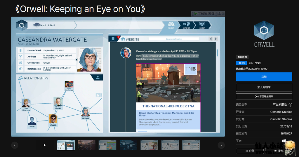 活动地址:https://store.epicgames.com/zh-CN/p/orwell-keeping-an-eye-on-you