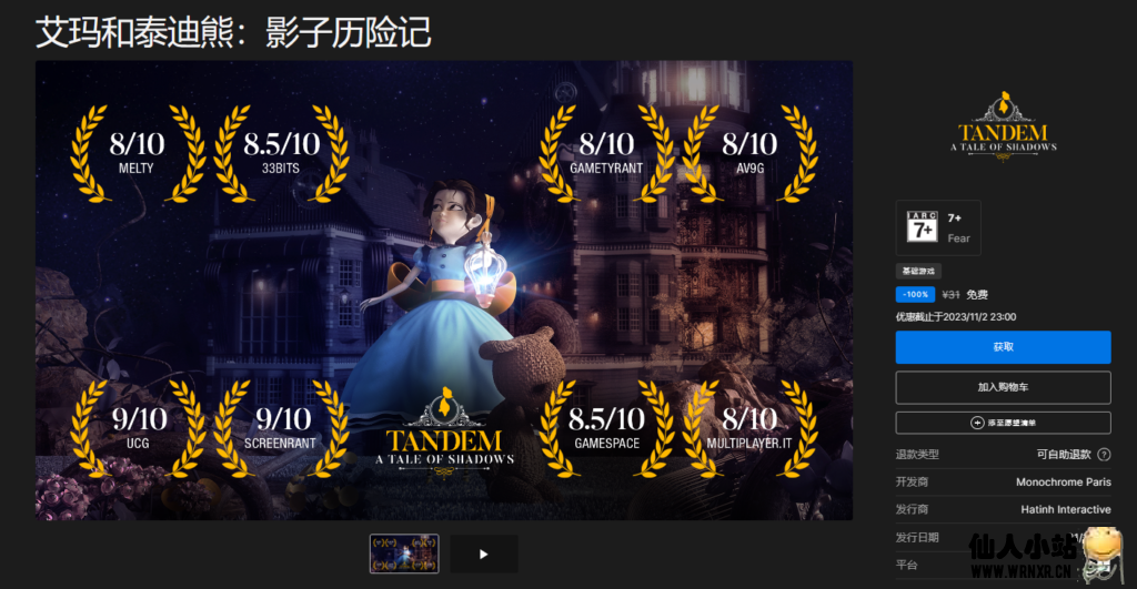 活动地址:https://store.epicgames.com/zh-CN/p/tandem-a-tale-of-shadows-c3f55e