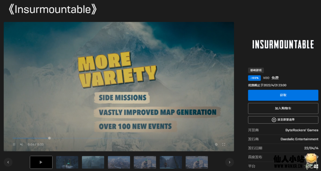 领取地址:https://store.epicgames.com/zh-CN/p/insurmountable-b02c31